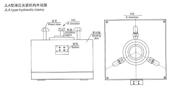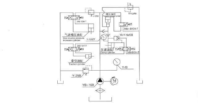 本機由液壓系統(tǒng)、機械部件,電器控制及多極氣源升壓裝置系統(tǒng)等部件組成。液壓系統(tǒng)是本試驗臺的動力主源。用于各類液壓缸和機械件驅動執(zhí)行功能。試驗面夾爪由液壓缸直接驅動執(zhí)行,軸向夾緊壓力是按閥門試驗壓力等級不同進行調(diào)節(jié)增壓(最高液壓增壓壓力31 5MPa)。各夾爪受力均,夾緊可靠。徑向移動由液壓缸傳動執(zhí)行,各夾爪進退同步,靈活自如,確保通徑大小不同閥門的測試。多極氣源升壓裝置是利用液氣聯(lián)動增壓。增壓范圍0.6—32 0MPa,用于閥門介質(zhì)壓力試驗。氣源升壓工作設有自動和手控二種操作選擇,當選用自動升壓工作時,工作人員可以近距離離開操縱臺觀察現(xiàn)場試驗情況。