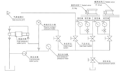 六、液壓供壓水泵開始工作前,先調(diào)節(jié)好電接點(diǎn)壓力表與被試驗(yàn)閥門壓力相同,然后進(jìn)行工作。