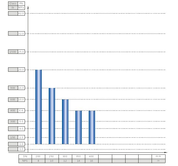?????? The test range of valve nominal diameter and nominal pressure for JWZ-400 model