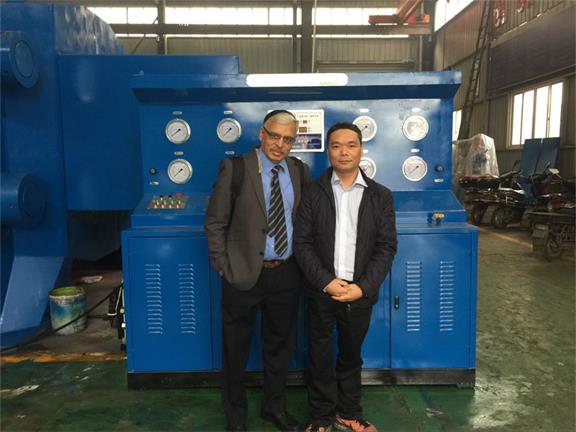 近日,印度(IVC)閥門公司INDIAN VALVE PVT.LTD總裁Mukherjee先生親自來浙江優(yōu)機機械科技有限公司驗收1月份定制的蝶閥、球閥試驗臺,這次訂購的設(shè)備是優(yōu)機公司國家專利產(chǎn)品:ZL 2014 2 0194312.6,液壓系統(tǒng)合理節(jié)能,操作人性化設(shè)計,是1月份該閥門公司技術(shù)部經(jīng)理Tomy 先生來中國實地考察各大廠家生產(chǎn)工藝及企業(yè)資質(zhì)后精心篩選確定下來的采購設(shè)備,這次采購的設(shè)備是代替IVC公司原有老式閥門測試臺主要水壓和氣壓試驗16”-32”的蝶閥和球閥。